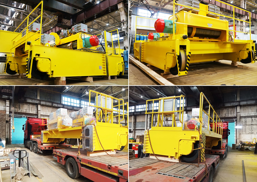 Продолжаем отгрузку двух мостовых двухбалочных кранов грузоподъёмностью 125/20 тонн.Отгружаем тележку с грузоподъёмными механизмами во взрывобезопасном исполнении. Тележка имеет габариты 8400×5200×3000 мм, массу 40 тонн, отгружается в разобранном виде для упрощения логистики на площадке заказчика.